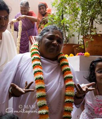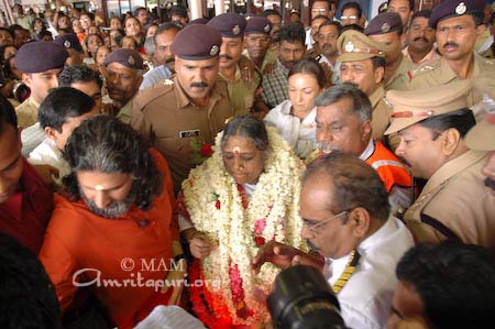 Amma arrived in Trivandrum Airport after her USA summer tour and was welcomed in Amritapuri as well by joyful devotees.