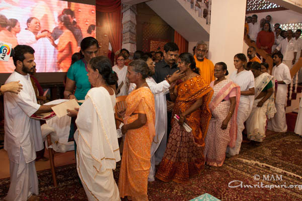 Next day morning, Amma came to the stage around 11am. An Indian Olympian athlete PT Usha and R Arunachalam, Mahe State Administrator, were invited to the stage, as Amma distributed Amrita Nidhi pensions. Seeds to cultivate organic farming were also distributed to devotees.