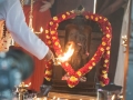 Finally she entered the temple. The 250-kilogram murti, having undergone a seven-day process of purification, was brought into the temple and the doors were closed and Amma installed the deity. Devotees continued chanting and the whole atmospere was charged with energy. After 20 minutes, the temple doors were opened. Amma performed arati to the newly installed murti, pouring another 108 kalashas of mantra-infused water. It was such a charming sight to watch Amma doing abhisheka, lost to this world, in a divine mood.