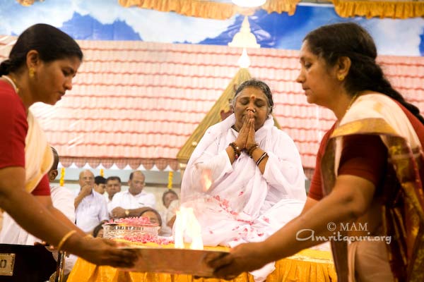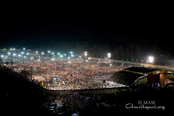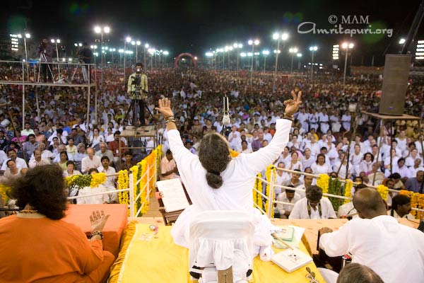 “Most of the people have misunderstood love – those on the stage, those off the stage and even those who are standing far away. Love is giving with joy, that which you value, when it is needed by another. God has blessed Amma with the ability to understand human need and render appropriate help accordingly. As a result many other people are also inspired to join in the humanitarian efforts. All praise to God who has given us this blessing in the form of Amma. May Amma be a blessing to many more people.