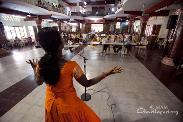 As part of Amma’s 56th Birthday Celebrations, 10,000 Vidyamritam scholarship recipients have come from all over Kerala. These students have had a full schedule since their arrival, including Amma’s darshan and bhajans, different competitions and a magic show. The finalists were given prizes in an evening function held on 26th.