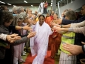 On all three days, the program hall filled to capacity. Each time Amma entered and left the hall, the crowd erupted in sustained applause and cheers that seemed to never end. The tone had really been set on that first night, and throughout Amma’s stay there, Malpensa Fiere became like a festival of joy. It was not an entirely Italian festival – there was a huge contingent from Greece, and in addition to participating fully in the program, they brought a Greek flavor to the event, enthralling the crowd with an offering of their own singing and instrumental performances.