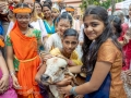 As part of Janmashtami celebrations (Sri Krishna’s birthday), devotees participated in GoPuja (worship of cows) and Nagara Sankeertanam (Chanting of the Divine name) at Amritapuri Ashram this morning.