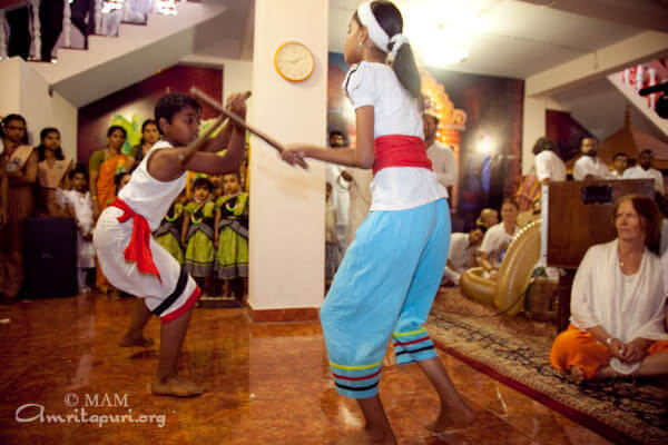 Scholarships for children were also distributed by Amma, as part of the ‘Vidyamritam’ free educational scholarship scheme. Children from Amma’s schools, ‘Amrita Vidyalayam’, came from five different cities and offered cultural performances. The main performances included martial arts shows, traditional and modern dancing, and dramas.