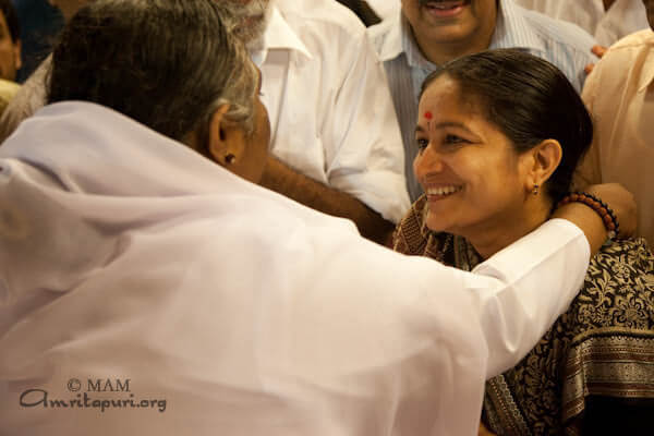 The second day of programs was the day before Shivaratri {news}. During the Shani Puja worship, in the end, Amma said, ‘Shivaratri is not only tomorrow. Actually, every day should become Shivaratri. Simply keeping awake and forgoing sleep is not enough. We have to awaken to that state (Shiva). We need to gain awareness in our thoughts, words, and deeds. Then every day becomes Shivaratri.’