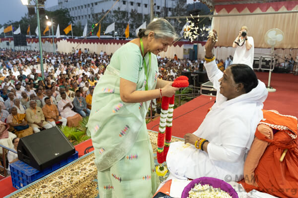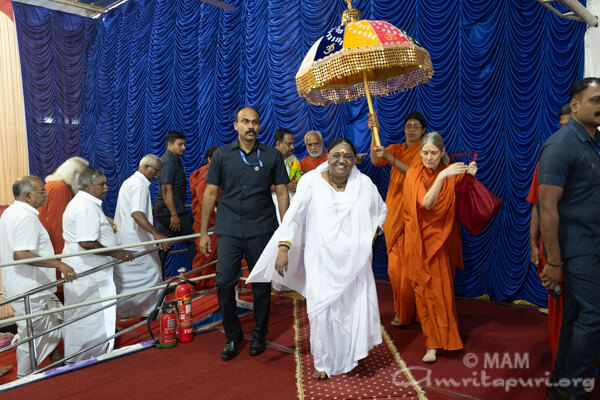 Amma then guided everyone in Manasa Puja and Ma-Om meditation in Tamil, the local language, followed by a session of bhajans mostly in Tamil.