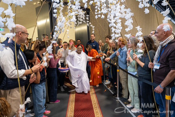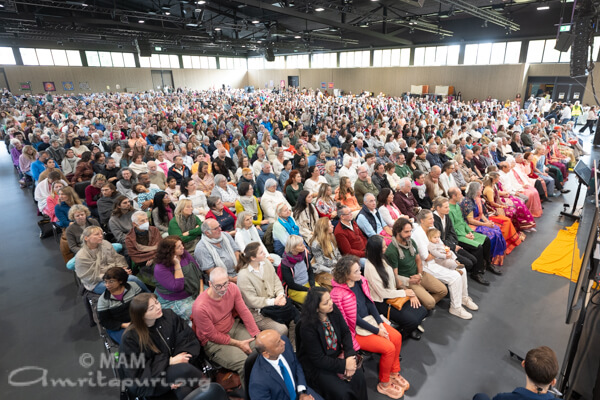 After six years, Amma returned to Europe. The longing of devotees was visible in their tears as they welcomed Amma into the program hall with deep love.