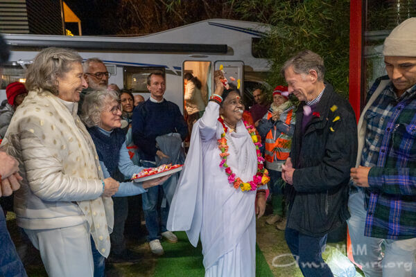 With hearts overflowing, devotees watched Amma depart as she continued her journey, driving onward to the United Kingdom, carrying her message of peace and compassion to the next destination of her European tour.