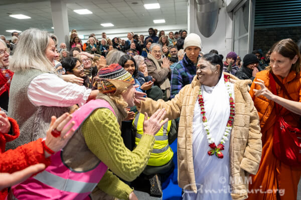 After her program in the Hof Herrenberg Ashram, Amma and the tour group traveled through Germany, across Belgium and finally traversing the northern coast of France before arriving at the famous engineering marvel, “The Chunnel”. After crossing the 50km passage under the English Channel the tour group arrived to the United Kingdom.