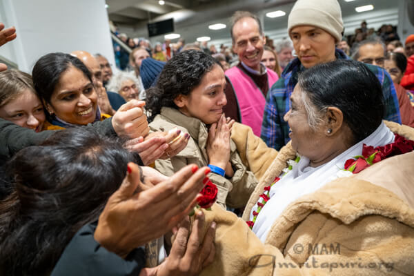For the next three days large crowds braved the frigid temperatures outside to experience the warmth of Amma’s embrace. Each day a full hall was packed with people sharing wonderful moments of meditation, satsang, bhajans and darshan.