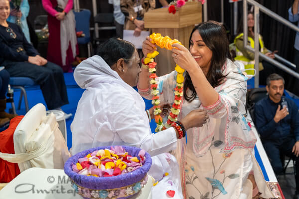 Addressing the crowd, Shivani Raja, Member of Parliament said: “As an MP, I spend much of my time dealing with the immediate pressures people face at home. It is deeply striking to me that Amma’s entire life has been dedicated to addressing the same challenges but on a global scale …and not through policy or politics but through compassion and service. “