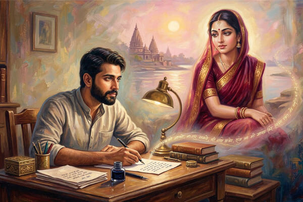 Amma explained, “When you prepare to write a letter to your loved one, you take a pen, paper, ink, and other things. Even though you see many objects, your mind is on your beloved. Though there are many things before you, you see unity, your beloved.”