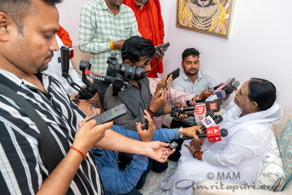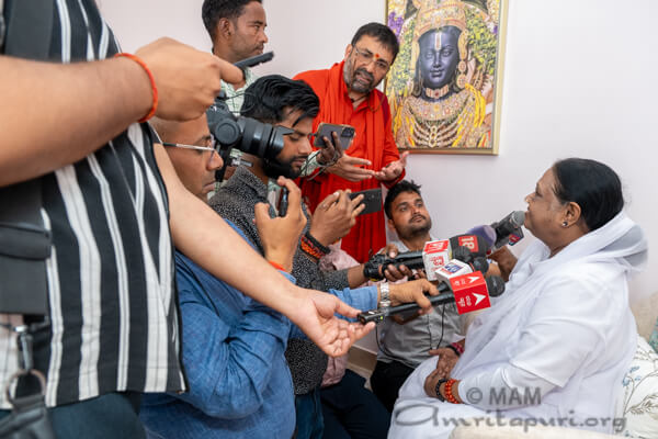 A few journalists approached Amma today to ask about her visit to the Shri Ram Mandir and the significance of the Rama Yantra installation. Amma graciously shared her reflections.